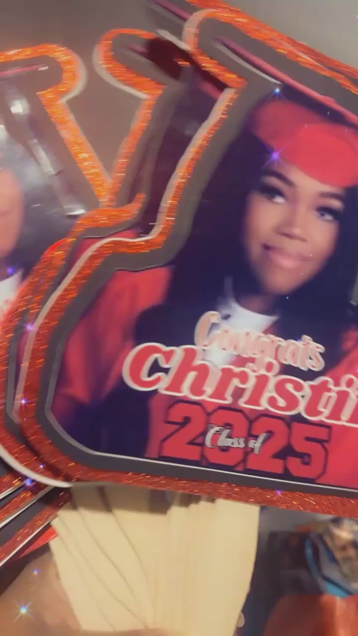 Create a unique and personalized fan to show off your team spirit with our custom grad fan! Perfect for graduations or sporting events, this fan will keep you cool while also making a statement. Don't miss out on this customizable product that is sure to impress! Fans are $5 each comes in set in 6 for $30